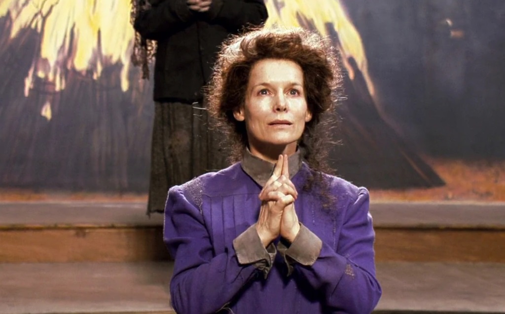 Possiede quel tipo di fanatismo estremista, quello che ti fa partire per una caccia alle streghe e poi quando pensi di averne trovata una la metti sul rogo senza sentire ragioni … Mi costrinse ad andare in luoghi molto, molto bui dell’anima. Ebbi il concreto timore che caricarla di questi elementi sullo schermo avrebbe potuto addirittura arrivare a spingere qualcuno verso gli stessi estremismi e pregai che non accadesse. Il problema, tuttavia, è che quando ti impegni in un ruolo non puoi fermarti a metà, devi andare fino in fondo con la sua caratterizzazione.