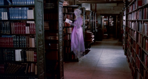 Fu qui che vennero in effetti filmate alcune delle sequenza più memorabili. Ricordate i libri che galleggiano a mezz’aria da uno scaffale all’altro? Ancora una volta, alla base c’è una semplice idea, coi volumi che viaggiano lungo dei fili (per un costo di 250.000 dollari, scherzò Harold Ramis). La scena dello schedario fu invece molto tecnica. Richiese a un gruppo di tecnici di stare dietro a un falso muro e soffiare attraverso alcuni tubi di rame per far roteare le carte. Anche la raccolta dei numerosi fogli sparsi in giro per la stanza alla fine fu effettuata senza l’uso del CGI, con grande dispiacere di tutti i soggetti coinvolti.