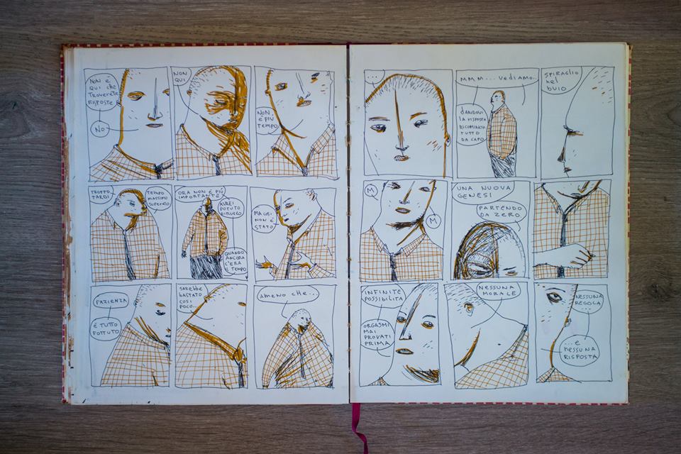 E’ una raccolta di storie brevi realizzate negli ultimi 15 anni e nasce da un’intervista fatta con Marco Taddei, il quale mi chiese se avessi mai pensato di raggruppare a questo punto della mia carriera tutte le storie brevi disegnate. Questa cosa mi ha fatto ridere e da lì ho cominciato a pensarci. Non a caso la prefazione è sua. Di alcune storie ho rimontato delle vignette, ma non le avevo più rilette da allora. Pensa che ho tenuto in mano il volume finito per la prima volta a Trieste, dove l’ho presentato in anteprima, e sfogliandolo l’ho trovato molto doloroso.