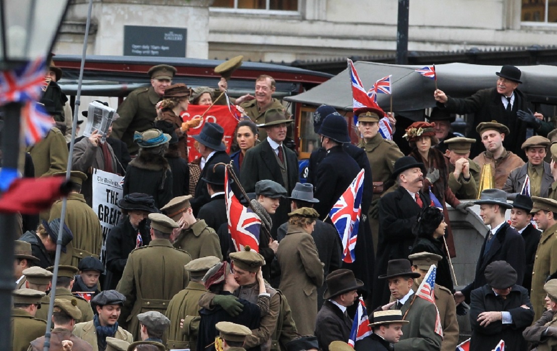 Sono state diffuse molte nuove immagini dal set londinese dell’attesissimo film di Wonder Woman della Warner Bros. Essendo il film ambientato nel periodo della Prima Guerra Mondiale, non dovreste metterci molto tempo a contestualizzare la sequenza in oggetto, coi festeggiamenti a Trafalgar Square a cui prendono parte le star Gal Gadot e Lucy Davis (L’alba dei morti dementi).