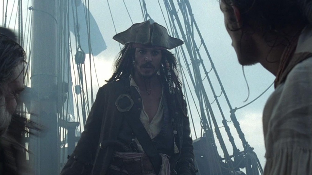 Il film esce come avventura autonoma, con una struttura narrativa chiusa, completa, autosufficiente. La storia intreccia romanticismo, azione e fantastico senza mai promettere un “poi”. Will Turner (Orlando Bloom), fabbro idealista segnato da un passato che ignora, parte per salvare Elizabeth Swann (Keira Knightley), rapita dalla ciurma della Perla Nera, guidata dal maledetto Hector Barbossa (Geoffrey Rush). In mezzo a loro si muove Jack Sparrow, ex capitano tradito, sopravvissuto per caso e per astuzia, interessato solo a riprendersi la nave e la propria libertà.