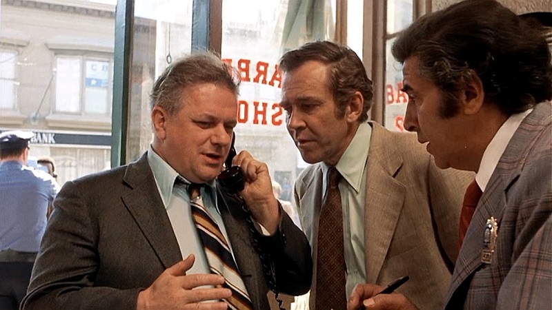 E’ isterico. Nevrotico. Esplode, come se fosse consapevole dell’unica occasione per farlo, come se in quella situazione estrema si senta finalmente libero di essere se stesso. Privo di menzogne e compromessi. Privo di ogni dovere, slegato da leggi sociali, è un cane libero. Ogni qual volta che deve uscire per parlare col poliziotto municipale (capo delle contrattazioni), il Signor Moretti (Charles Durning), è un motivo in più per fare un suo show. Osannato dal pubblico appostato per l’evento, in scatti fuori controllo e privi di ogni razionalità grida il proprio sdegno per la società americana e per ciò che ne sta diventando (da ricordare senza se e senza ma il momento in cui grida “ATTICA”, in riferimento alla rivolta carceraria nell’omonimo carcere organizzata dalle Pantere Nere dopo l’uccisione dell’attivista politico George Jackson).