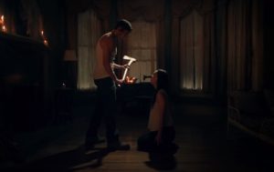 Così, finalmente, veniamo traghettati dopo parecchio minutaggio, destinato a mal indagati drammi adolescenziali, alla meta ultima, ossia le peripezie all’interno della magione abitata da maligne presenze. Filiazione sfortunata del prototipo alla Amityville Horror, che dal 1979 ha inaugurato una lunga serie di remake e copie più o meno vicini all’adattamento dal libro di Jay Anson, anche qui la presenza di entità diaboliche implica la possessione di coloro che si trovano all’interno di un perimetro maledetto, tuttavia quivi tutto è maldestramente abbozzato e le origini del male, come il suo effetto, sono svelati in maniera tanto farraginosa da non riuscire a strutturare alcun senso di angoscia o terrore. Anzitutto, non è assolutamente indagato il motivo per cui il reverendo Kelly, ovvero colui che si crede essere l’autore della strage degli anni ’10, ad un certo punto inizi a trucidare i suoi accoliti; parrebbe sempre un’antica entità maligna a costringerlo, ma la natura e le origini della stessa sono del tutto trascurate.