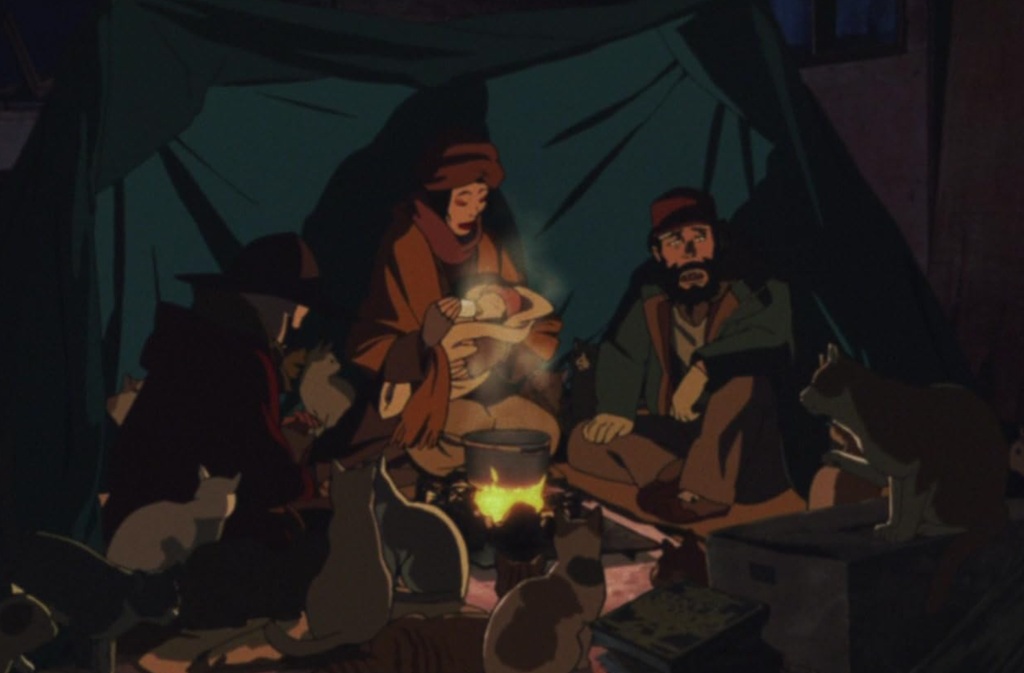 La rappresentazione dei senzatetto è uno degli aspetti più toccanti del film. Kon non li usa come simbolo o curiosità, ma come esseri umani complessi, capaci di ironia, rabbia e tenerezza. Mostra la rete invisibile di relazioni tra chi vive per strada, i piccoli codici di sopravvivenza, la dignità mantenuta anche nel degrado. È un ritratto che non indulge al pietismo: il regista suggerisce che la povertà nasce spesso da un intreccio di vergogna e orgoglio, da scelte sbagliate e porte chiuse, da un senso di fallimento che impedisce di chiedere aiuto. L’ambientazione – un inverno sporco, fatto di viuzze, ponti e cassonetti – diventa parte integrante del racconto: una Tokyo che non è mai cartolina, ma organismo vivo e contraddittorio, capace di brutalità e miracoli.