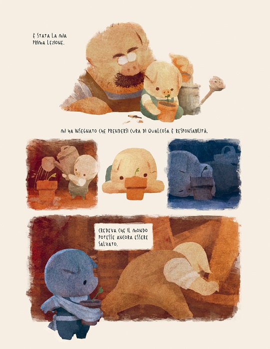 Come detto in apertura, gli autori Robert Kondo e Daisuke “Dice” Tsutsumi, per anni Art director presso i Pixar Animation Studios (Toy Story 3, Ratatouille e Monsters University), si sono a un certo punto messi in proprio, fondando la Tonko House, lo studio d’animazione con cui hanno prodotto appunto The Dam Keeper, che è stato candidato ai premi Oscar del 2015 nella categoria ‘Miglior cortometraggio animato’. Dall’apprezzata opera, i due autori hanno quindi deciso di trarne un delicato romanzo grafico, cartonato (160 pagine), che torna a raccontare la vita dei buffi animali – molto umani – del villaggio avvolto dalla spaventosa nube nera, che soltanto la diga può respingere. Una favola attualissima che parla di sacrificio, affetti ed emarginazione in modo delicato, ma concreto e mai superficiale.