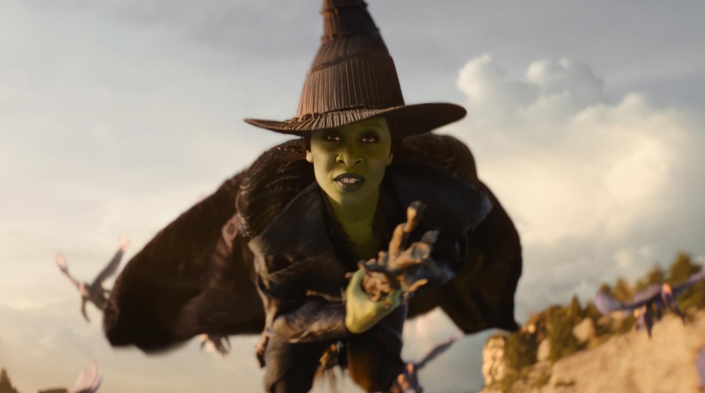 Il film mostra una Elphaba che vola sulla sua scopa come una guerriera solitaria, intento a rovesciare un potere fondato sulla propaganda. Proprio la propaganda diventa uno degli elementi più forti del film: la campagna orchestrata da Madame Morrible, capace di manipolare i messaggi e trasformare verità scomode in minacce inventate, offre una lettura sorprendentemente moderna del mondo di Oz. L’episodio in cui una frase di denuncia viene mutata magicamente in un presunto incitamento alla violenza riassume l’essenza di un potere che vive di distorsioni, sospetto e paura.