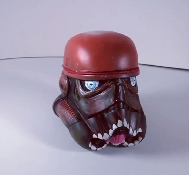 Poche immagini dei film di Star Wars sono più iconiche dei caschi degli Stormtrooper, che sono diventati un simbolo immediatamente riconoscibile per tutta la saga. Queste ‘maschere’ hanno senza dubbio un design accattivante, ma peccano un po’ in fatto di colori, rendendole così tele perfette per ogni appassionato in cerca di svago. Personalizzare gli elmi dell truppe d’assalto dell’Impero è diventato un passatempo popolare nel fandom di Star Wars, in particolare grazie al recente arrivo sul mercato di maschere in vinile completamente bianche, e nessun artista ha eseguito lavori più impressionanti di Charles Clary.
