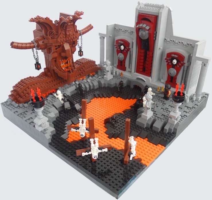 Questi infatti si è ispirato al viaggio ultraterreno del Padre della Letteratura Italiana, che immagina di discendere, affiancato dal mentore Virgilio, nei gironi infernali, dove assiste a terribili – ed eterne- punizioni e dialoga con svariate categorie di peccatori, alcuni a lui coevi, alcuni del passato. Utilizzando i mattoncini Lego, il fantasioso autore, ha ricreato le tappe della visita agli Inferi di Dante, riproducendo alcuni dei passi più famosi della celebre prima Cantica, in 9 miniature, raffiguranti i 9 gironi.